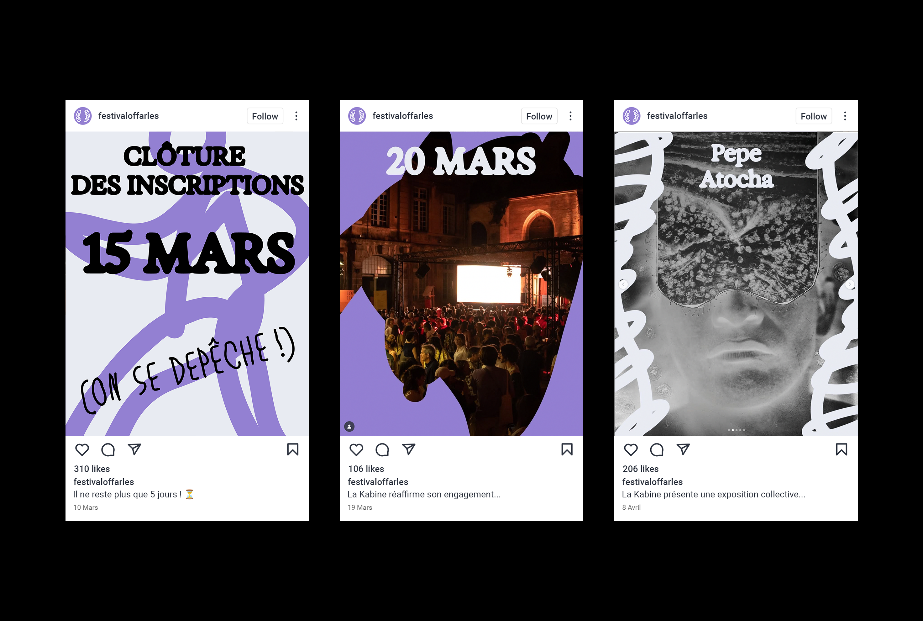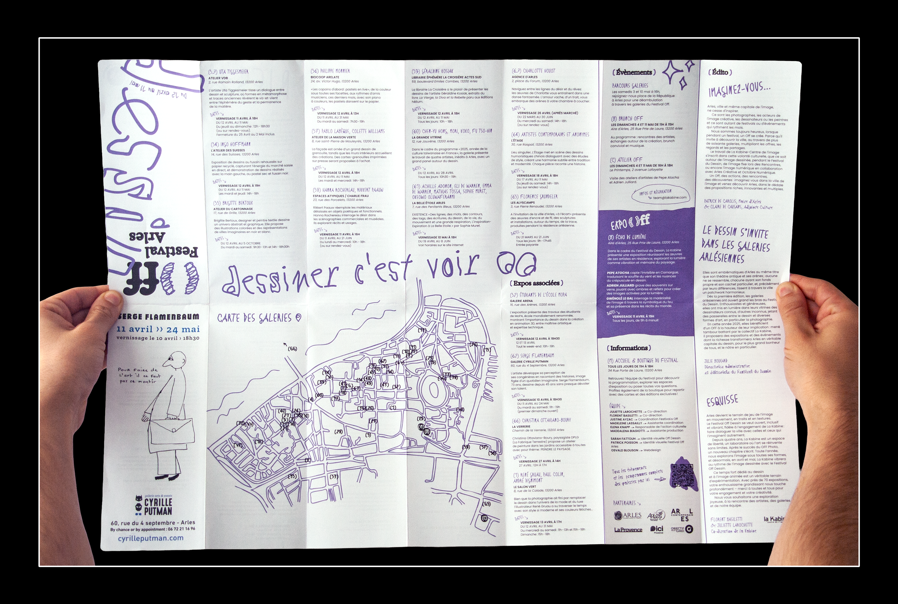 Art direction and branding of Draw Arles Festival’s first edition. From April to May, the festival, organized by the collective La Kabine, showcased emerging drawing artists through an open-air program in collaboration with Arlesian galleries. For this first edition focused on artists who draw, the logo, program brochure, and Instagram posts were designed to match the identity of the Off Photo festival and complement it.