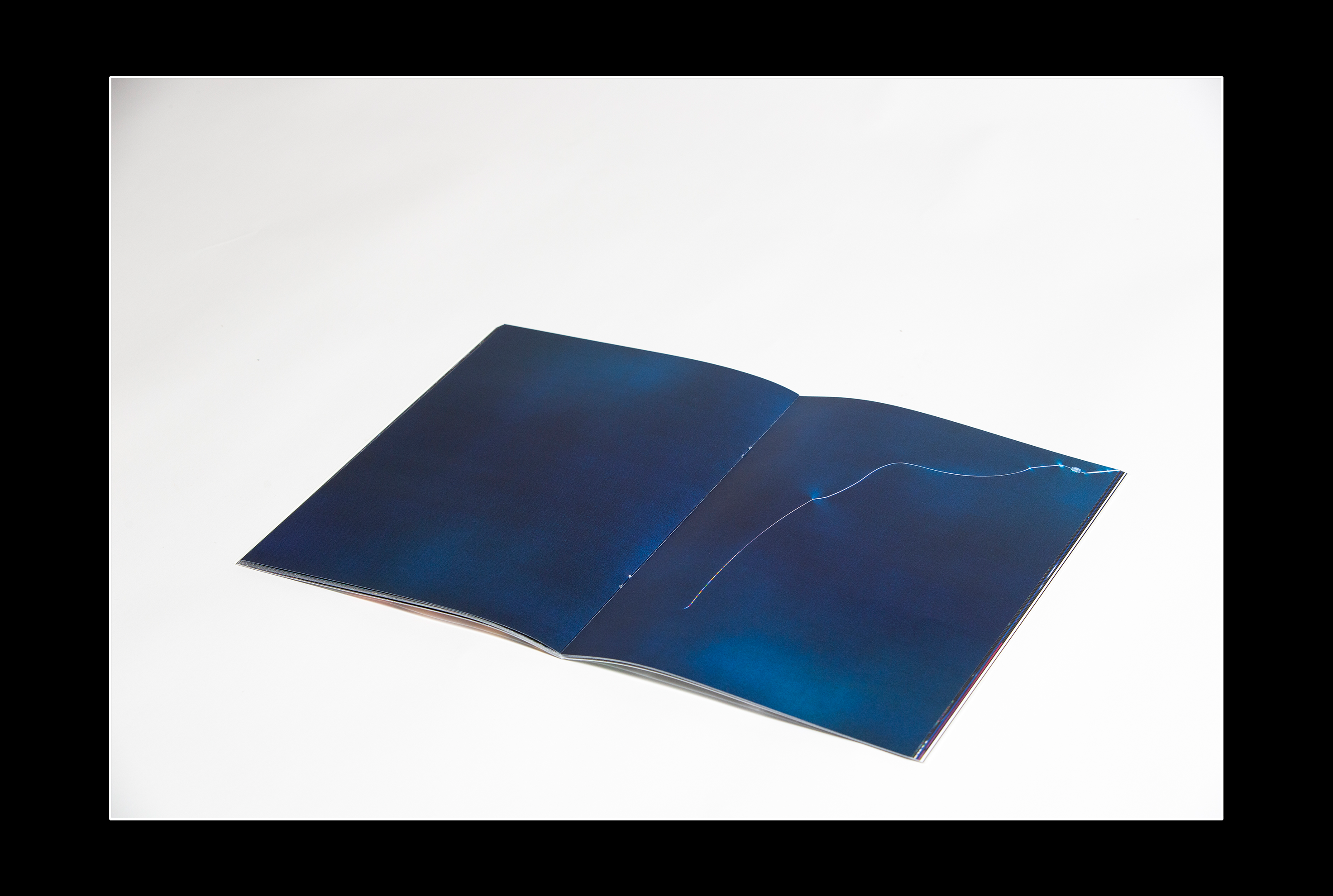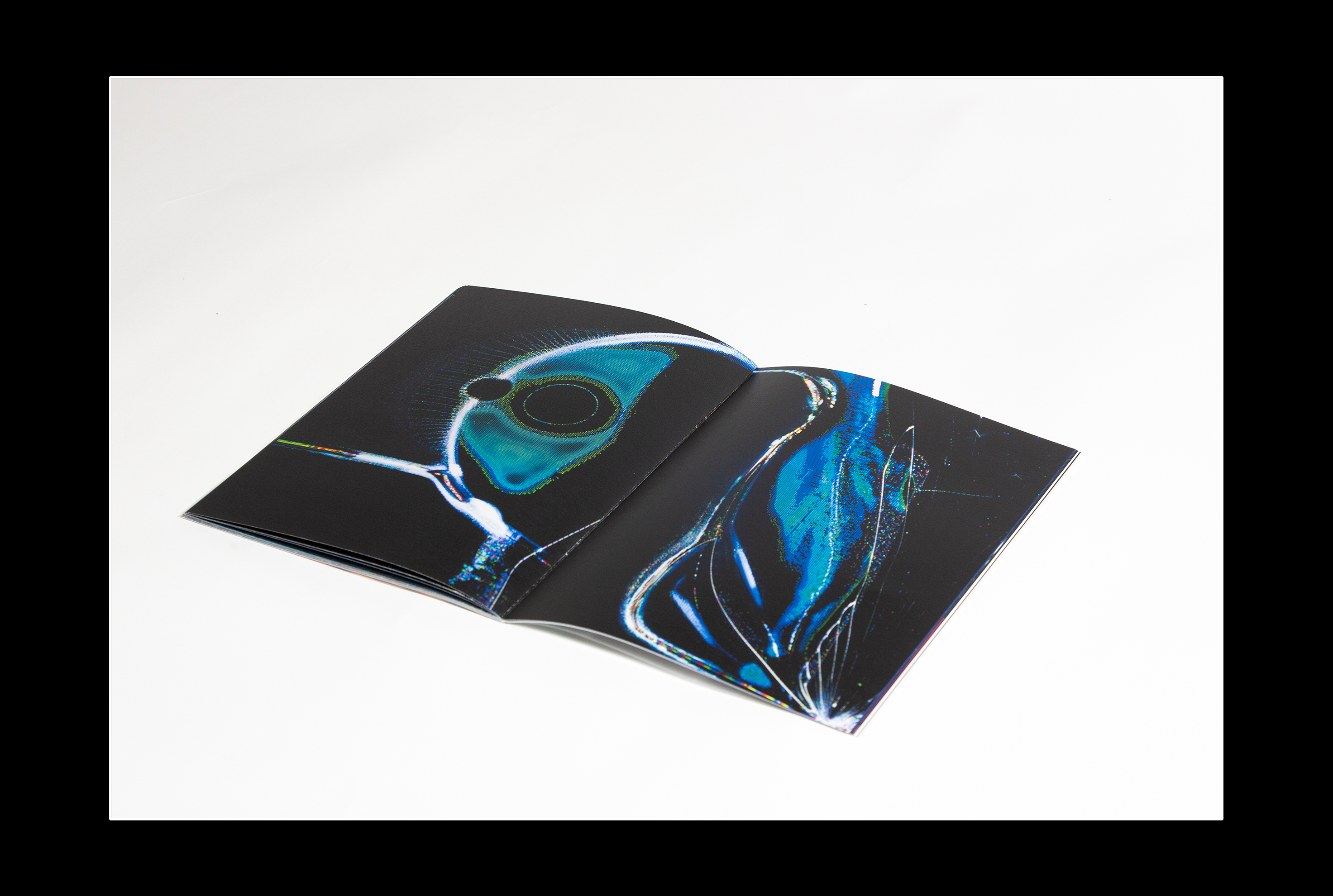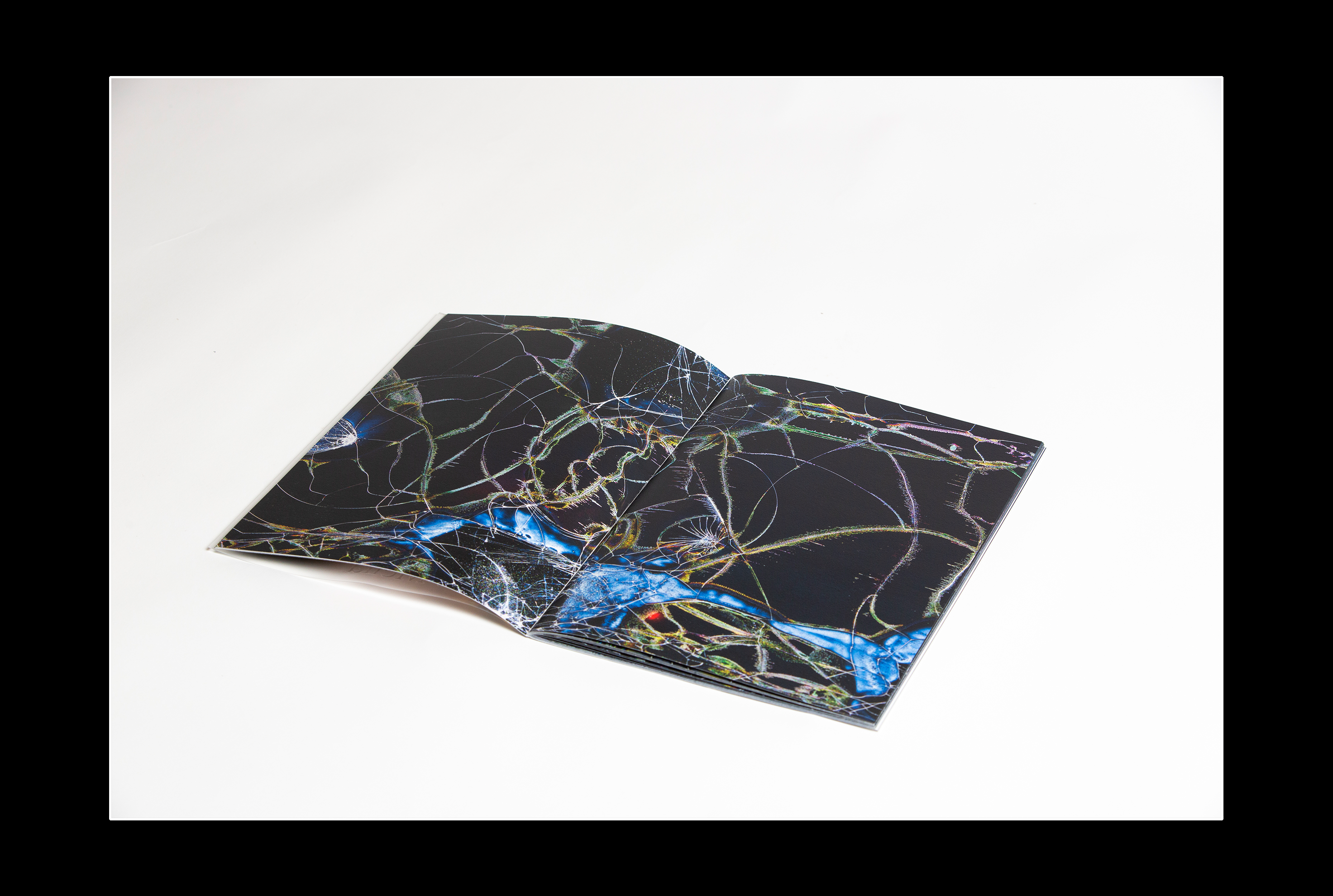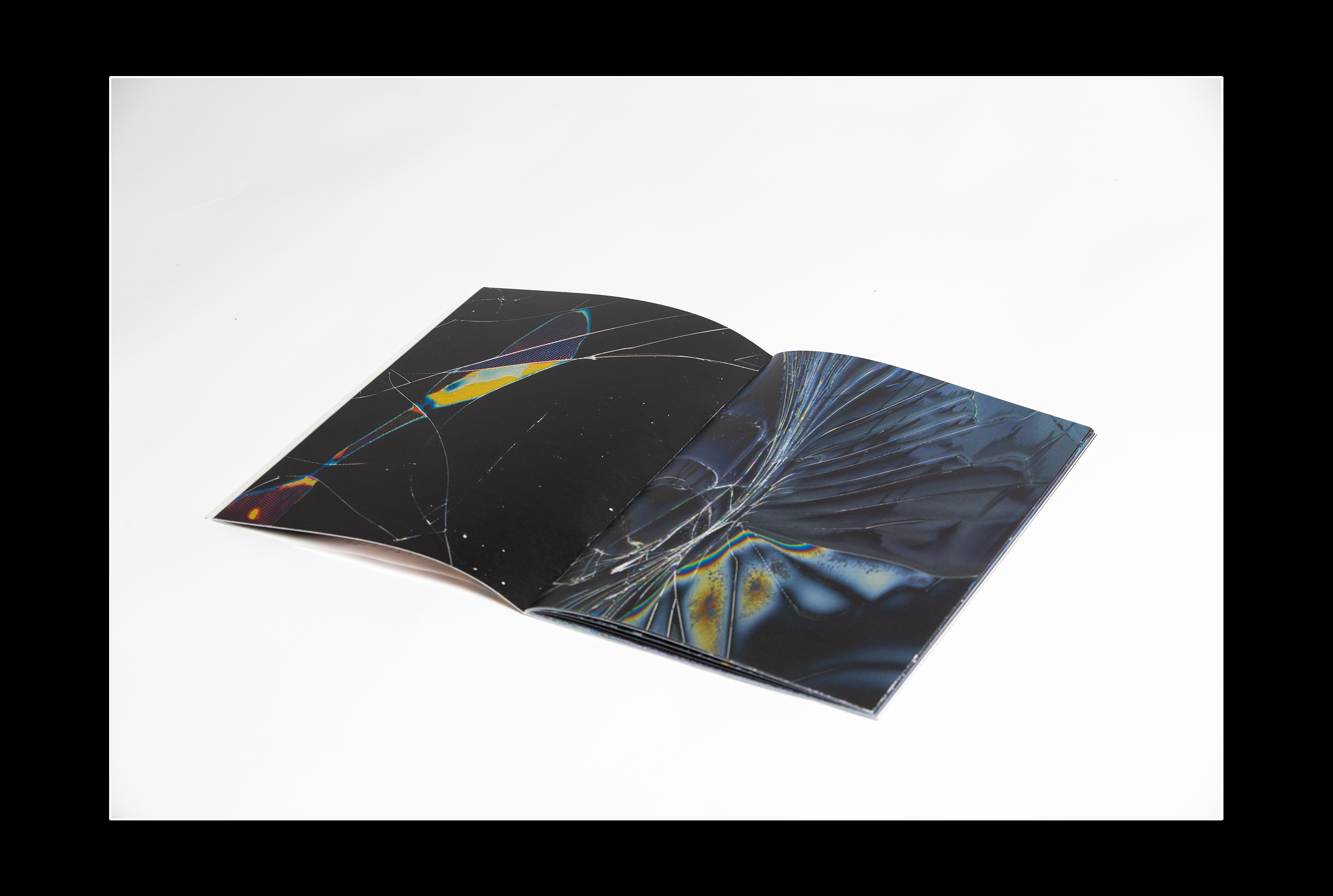 Art direction of the photography book Tyché, self-published by photographer Cécile Mella. Tyché questions our belief in images and the medium that best embodies them in today's world: the screen. Her project led her to collect damaged televisions and destined for recycling. When turned on, they produce patterns of light and pixels resulting from technological glitches. The book cover is made of prism film collected from screens, onto which the title has been laser engraved.